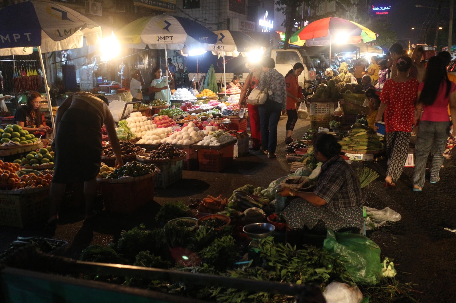 The sun began to set and we left the pagoda, headed for the Chinatown Night Market. We again walked from the pagoda to Chinatown and the sun had completely set by the time we arrived. When we arrived the streets were already bustling. The vendors were out and the streets came alive. Again, it reminded me a bit of India, but this time around, I felt safe. Not a single vendor tried to sell either Erik or myself anything, nor did anyone seem to stare at us. It felt completely normal. It was a great feeling.